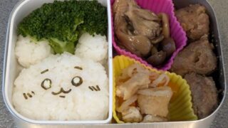 ちいかわ弁当です🍱ちょっと顔は違うけど、ほっぺの3つの線を付けたらちいかわっぽくなりました😌表情むずかしー
