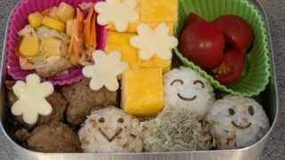 シンプルなお弁当になったので、お花型でスライスチーズを型取りして飾ったら可愛くなりました✨