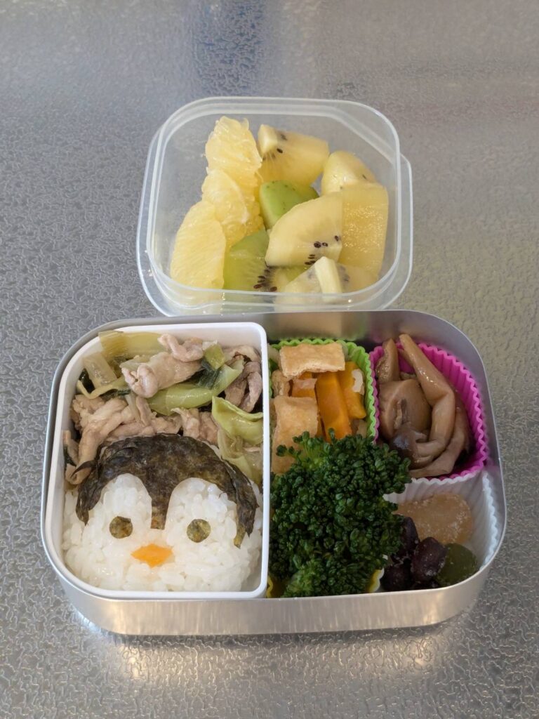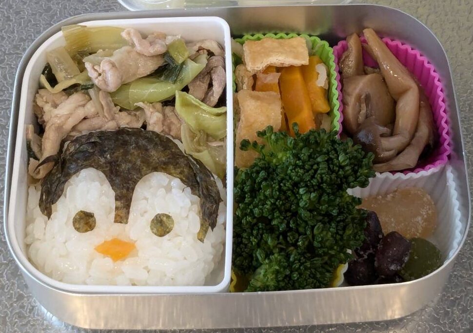 キャラ弁 2025年5月 その7 キャラ弁 X Facebook はてブ LINE コピー 2025.06.19ペンギンのお弁当🐧くちばしのオレンジは横に入れた切り干し大根の煮物のにんじんを使って作成しました🥕