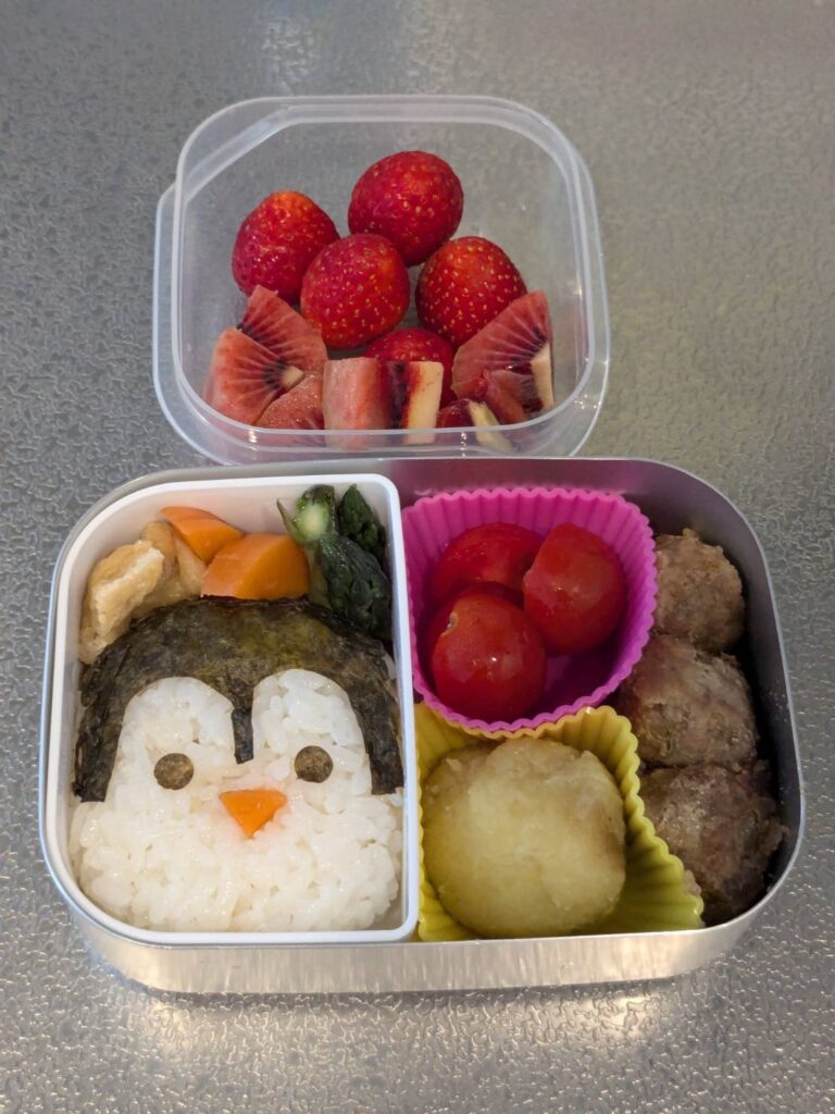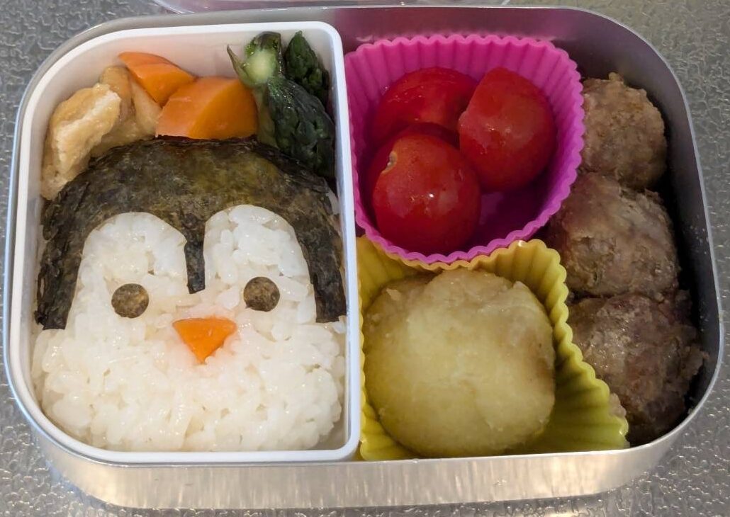 キャラ弁 2025年5月その11 キャラ弁 X Facebook はてブ LINE コピー 2025.06.19子どもの中でブームがきている🐧のお弁当です。さつまいも(焼き芋)をラップで包んで丸めたのが甘くて予想外に高評価でした🍠