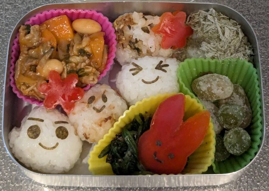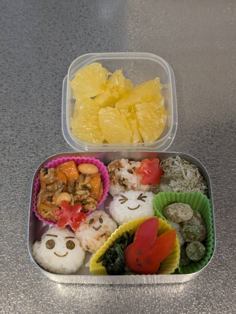 キャラ弁 2025年6月その3 キャラ弁 X Facebook はてブ LINE コピー 2025.06.17小さいサイズのうさぎの型取りがあったので、パプリカをうさぎに🐰うさぎさんにも海苔で目と口をつけたら可愛くなりました✨