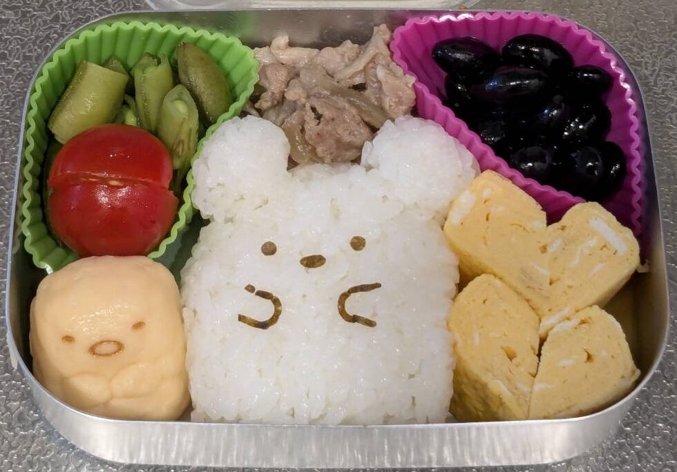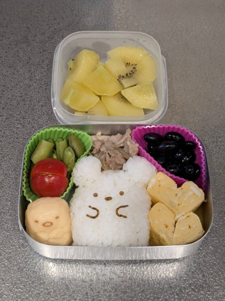 キャラ弁 2025年6月その6 キャラ弁 X Facebook はてブ LINE コピー 2025.06.24すみっこぐらしのお弁当🍱卵焼きをハート❤️にしたのと、すみっこぐらしのカマボコで可愛くなりました✨