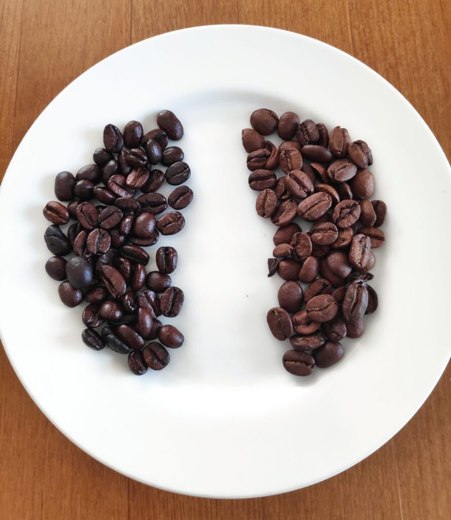 豆の色(焙煎度)が違いますね。