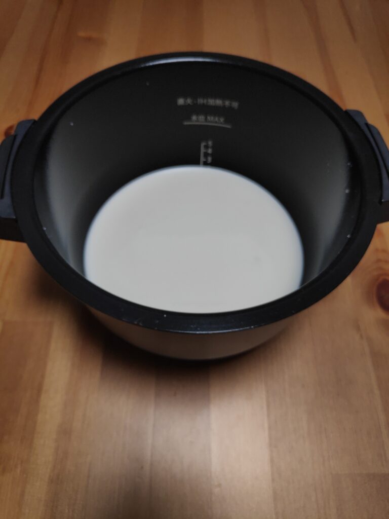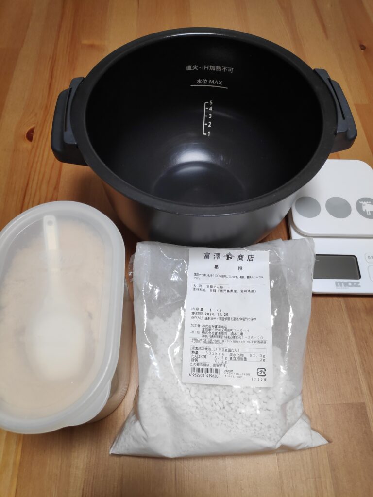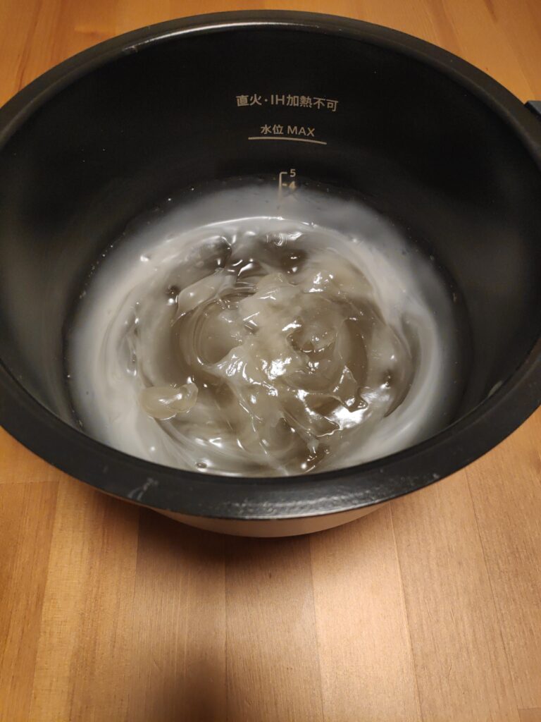 ホットクック内鍋に葛粉と砂糖を入れます。